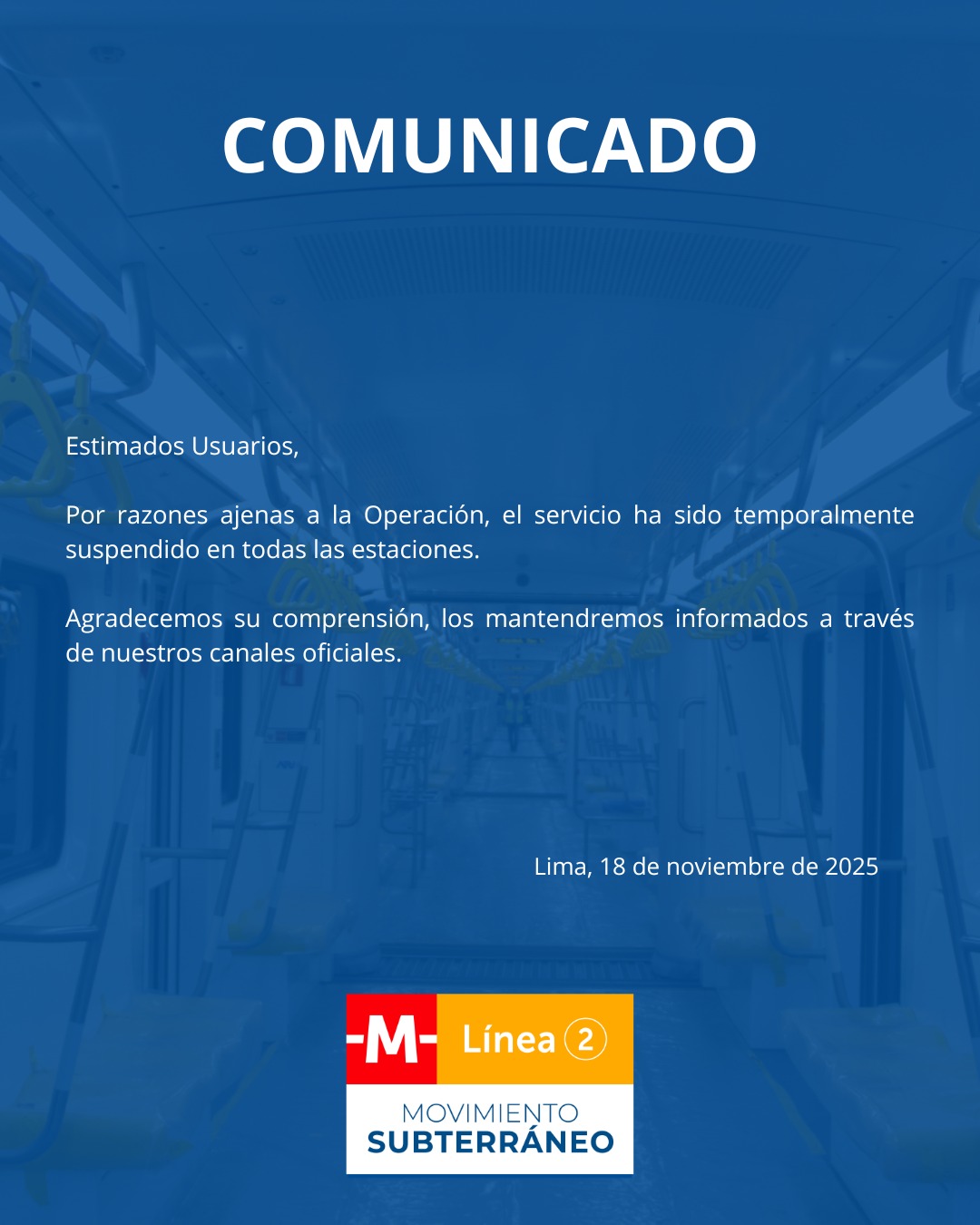 Por razones ajenas a la Operación, el servicio ha sido temporalmente suspendido.